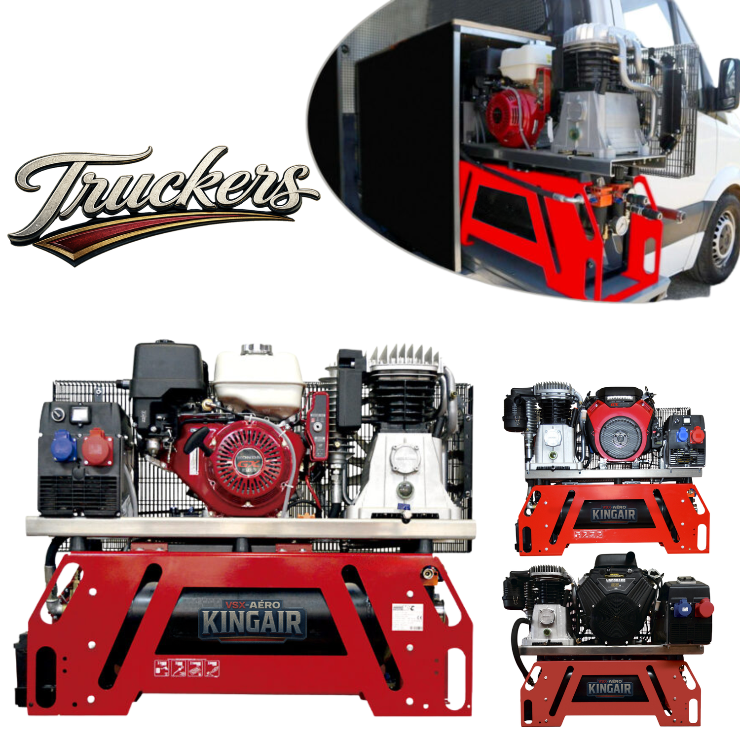 La gamme KINGAIR TRUCKER regroupe des motocompresseurs thermiques haute performance avec générateur intégré, spécialement conçus pour les professionnels du sablage, de l’aérogommage, de la maintenance industrielle et des interventions mobiles.